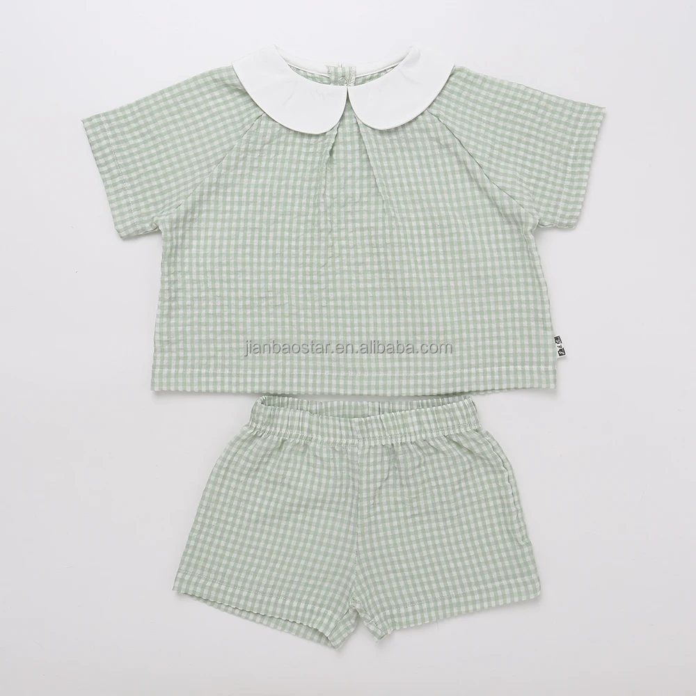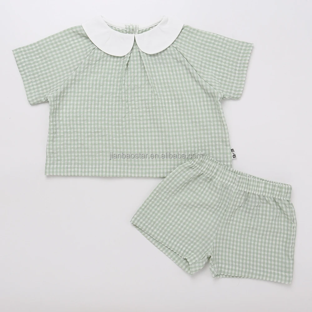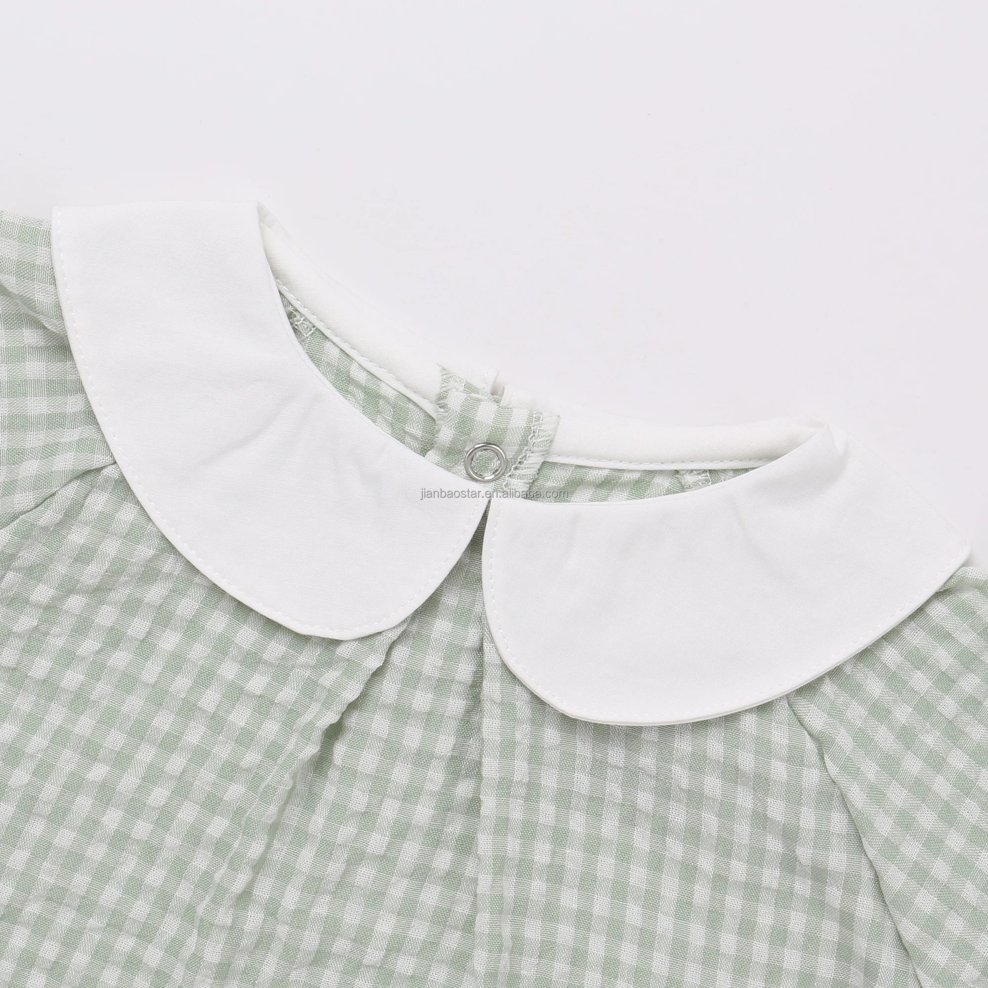 Product Name | 70%viscose 30%linen Fabric New Design Peter Pan Collar Casual Quick Dry Short Sleeved Girls Summer Baby Clothing Set Baby Romper |
