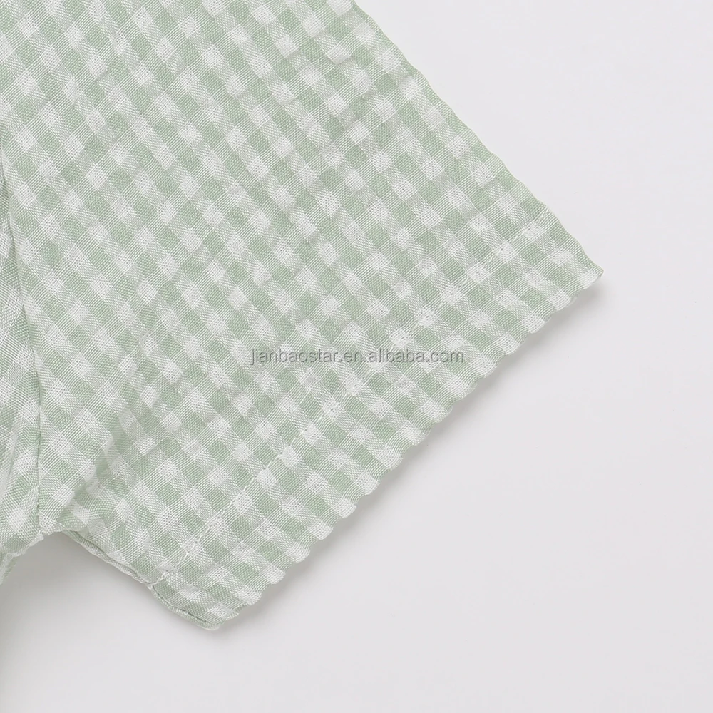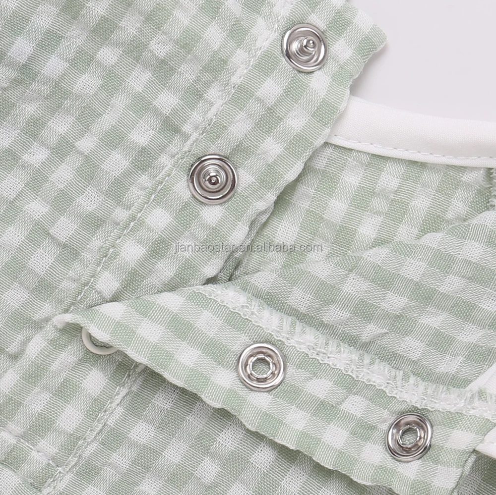 70%viscose 30%linen Fabric New Design Peter Pan Collar Casual Quick Dry Short Sleeved Girls Summer Baby Clothing Set Baby Romper