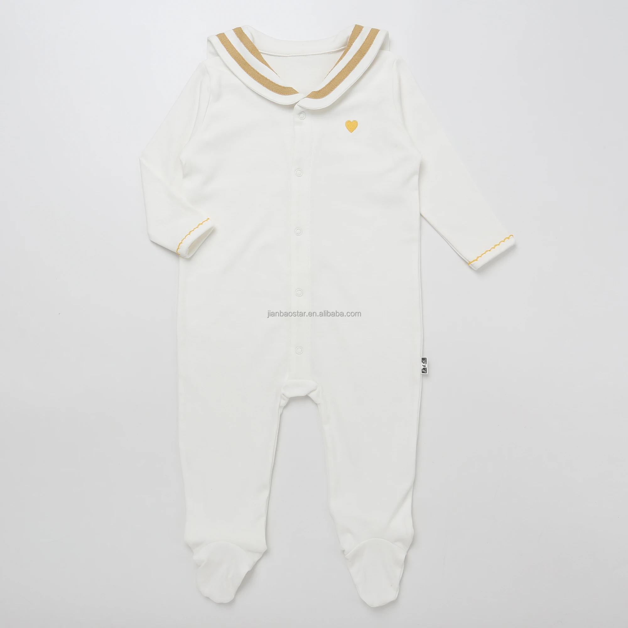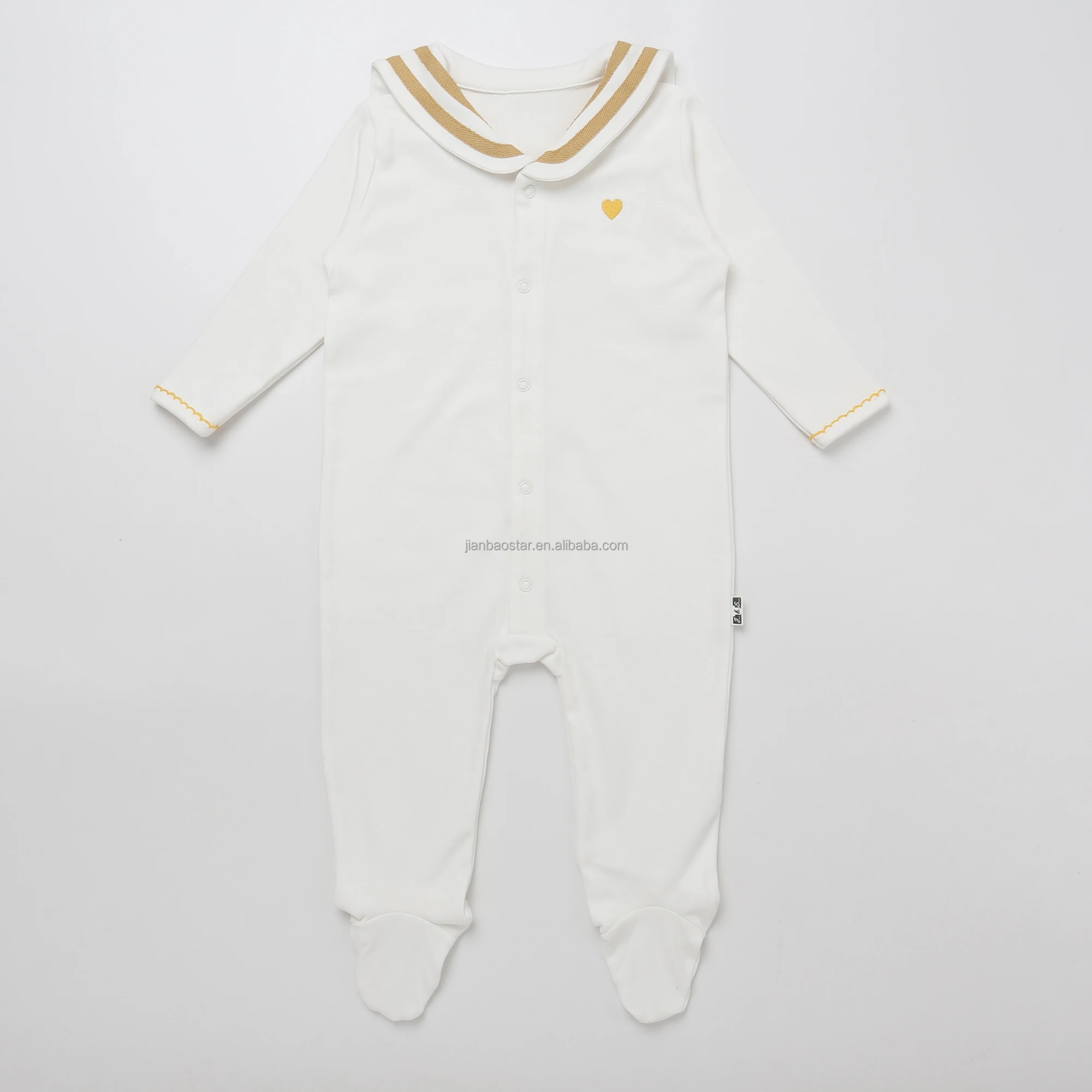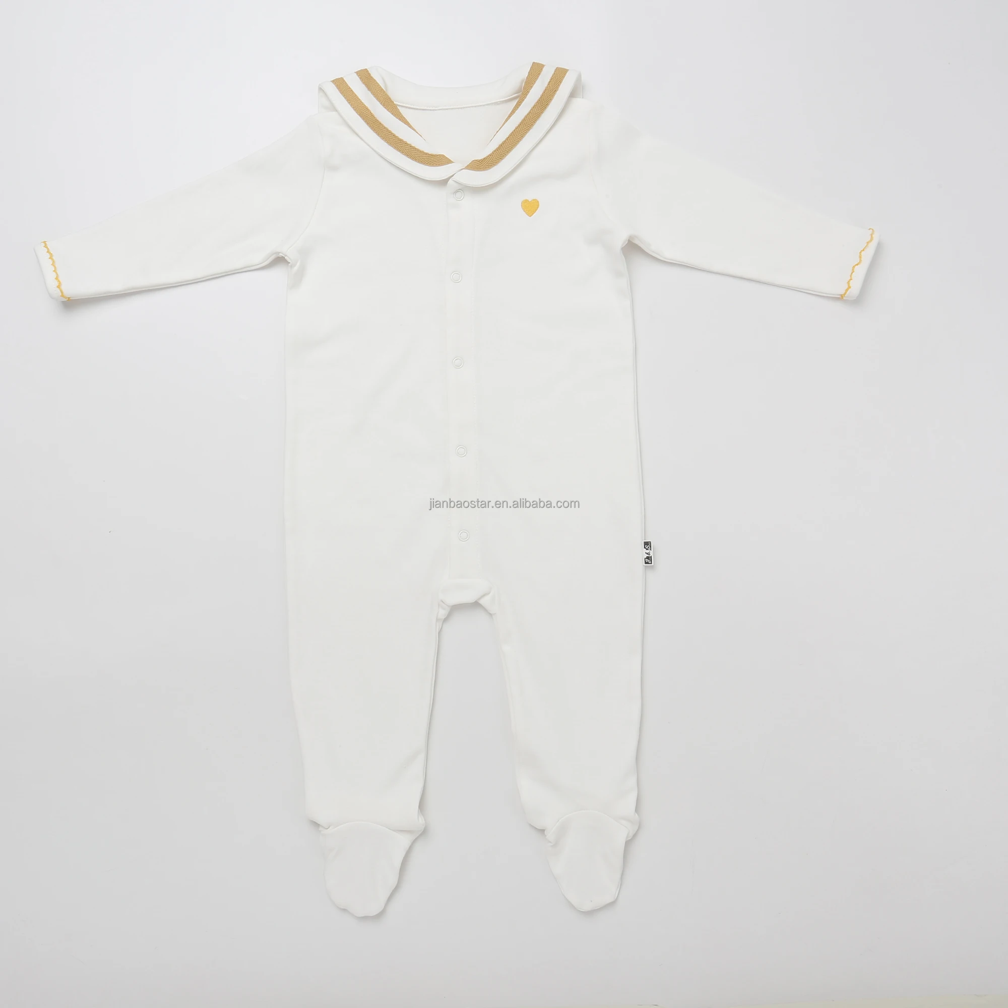 Product Name | 100%orginc Cotton Hot Sale Embroidery on Clothes Unisex Print Button Long Sleeves Closure Knitted Baby Clothes Baby Romper |
