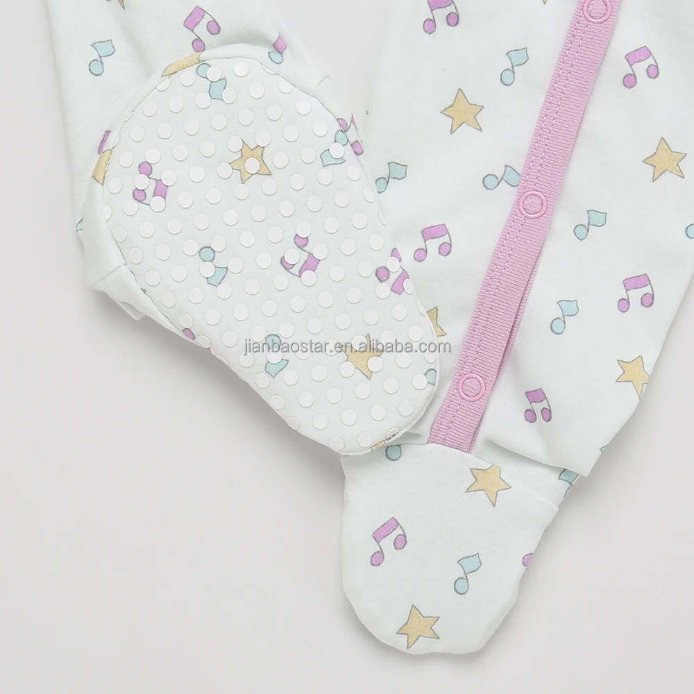 100%orginc Cotton Hot Sale Super Soft Custom Print Button Grips Design Long Sleeves Closure Knitted Baby Clothes Baby Romper