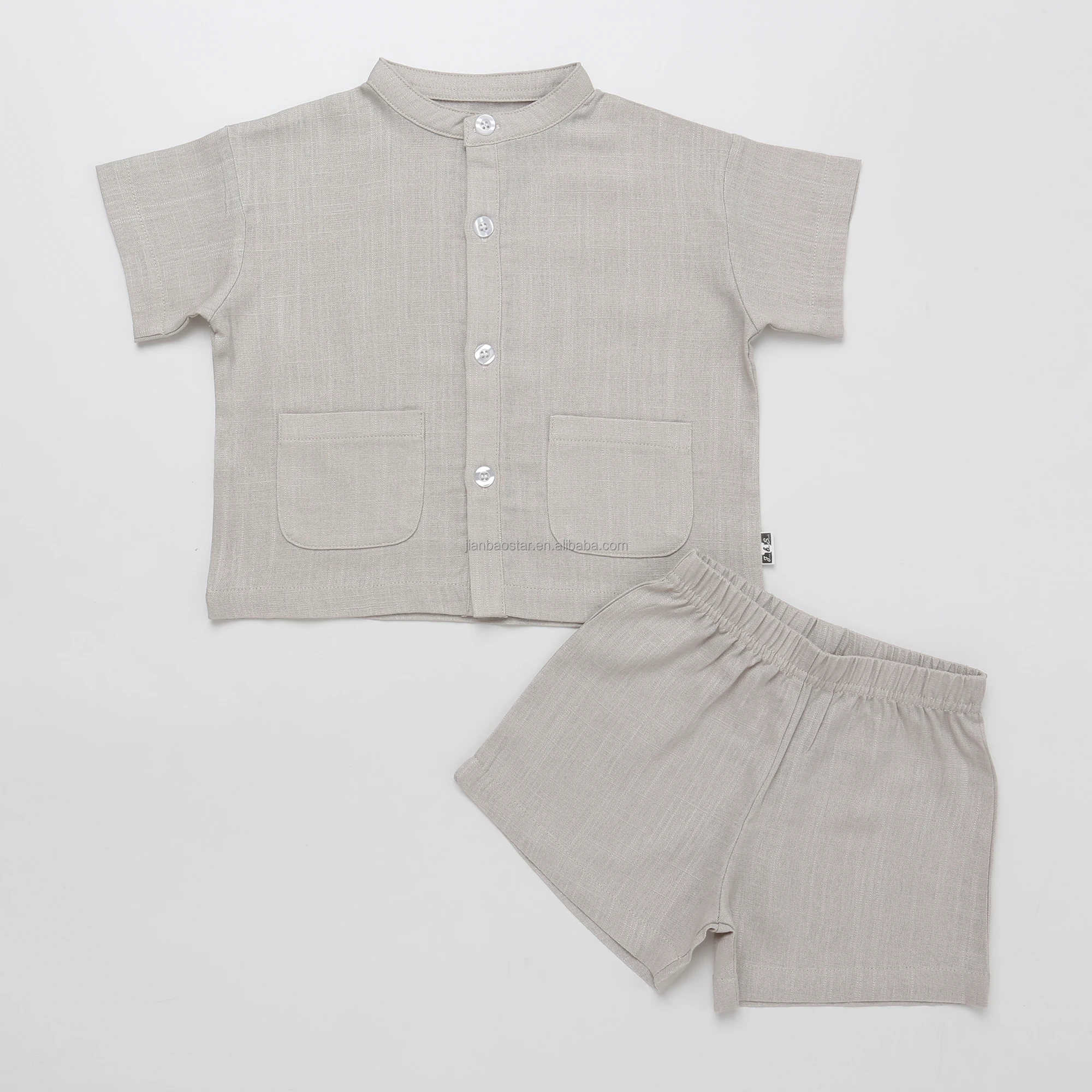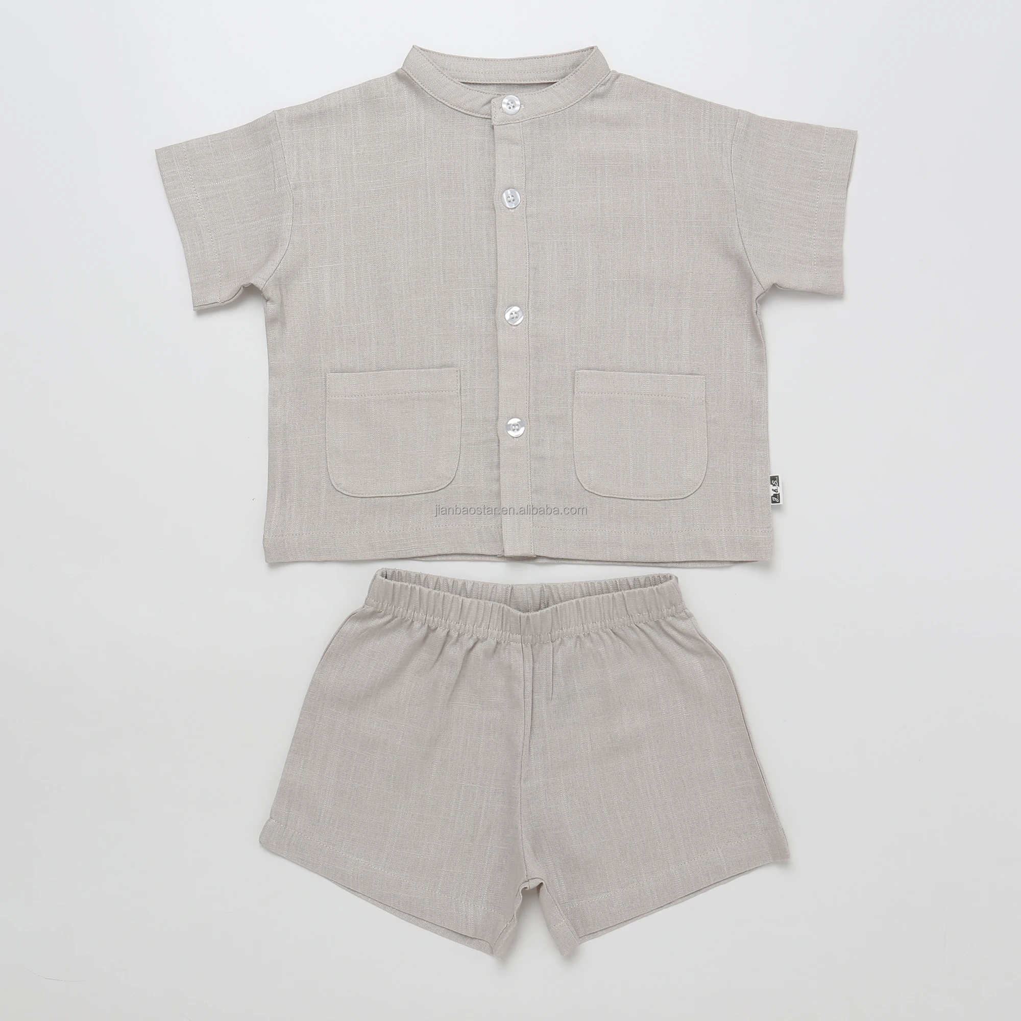 Product Name | 70%viscose 30%linen Fabric New Button Pocket Design Casual Short Sleeved Unisex Summer Baby Clothing Set Baby Romper Breathable |