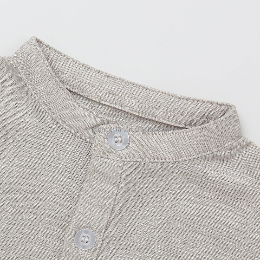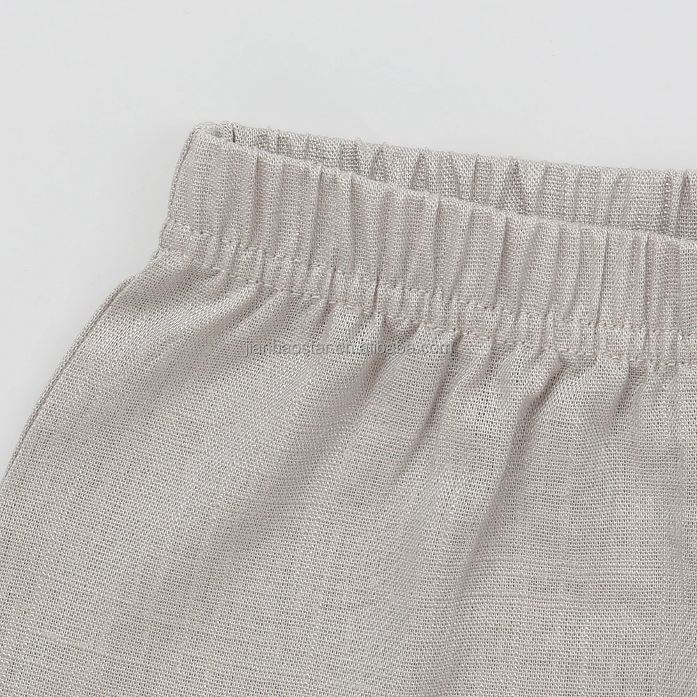 70%viscose 30%linen Fabric New Button Pocket Design Casual Short Sleeved Unisex Summer Baby Clothing Set Baby Romper Breathable