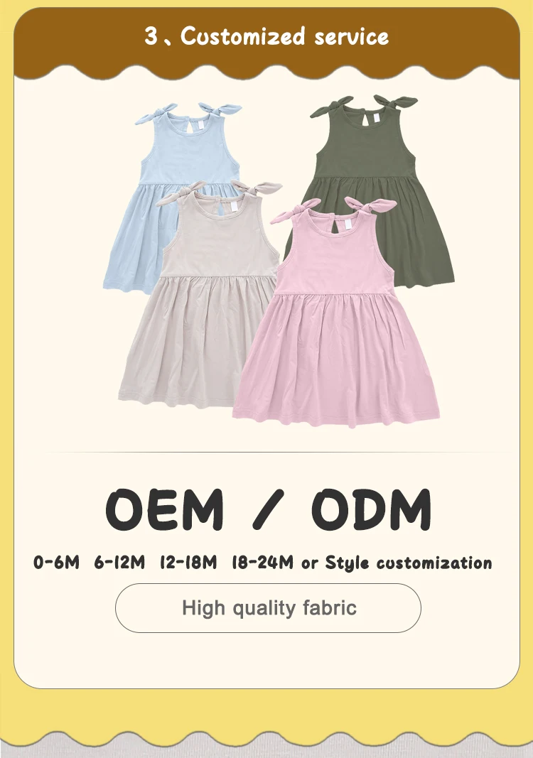 Product Name | Beautiful Casual Style Bamboo Dress for Baby Girls Solid Pattern Soft and Comfortable Fabric Bows for Spring Summer |