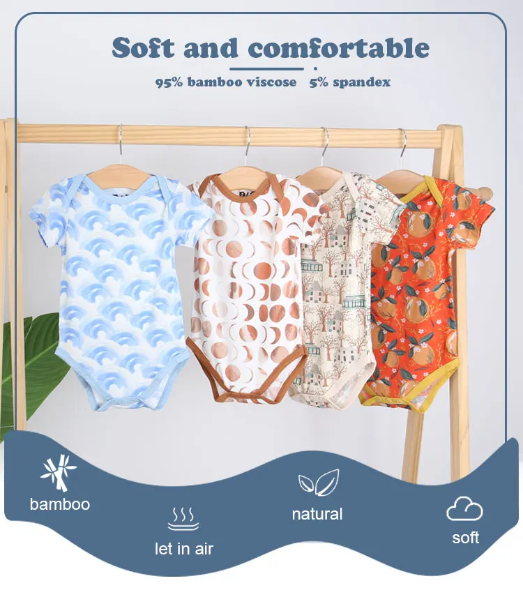 Causal Style Newborn Infants Bamboo Spandex Bodysuit Jumpsuit High Quality Baby Girls and Boys Clothing New Printing Baby Romper