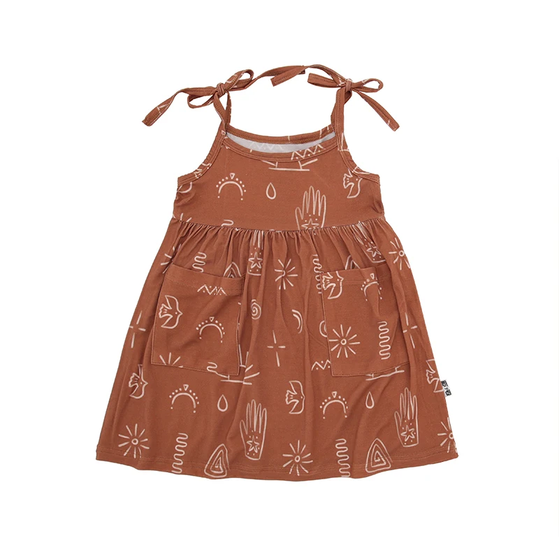 Children Girl Clothing Kids Clothes Plain Color Summer Sleeveless Little Girls Dress with Ruffle Bow