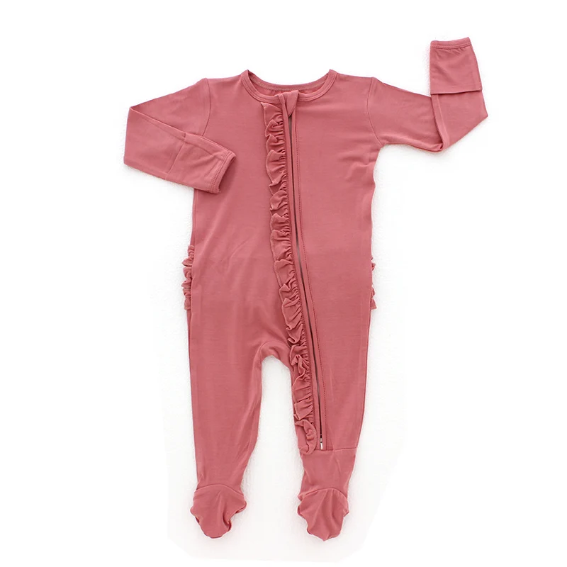 Custom Plain Baby Rompers 100% Organic Cotton Bamboo Fiber Infant Pajamas With Footie Zipper Baby Footie