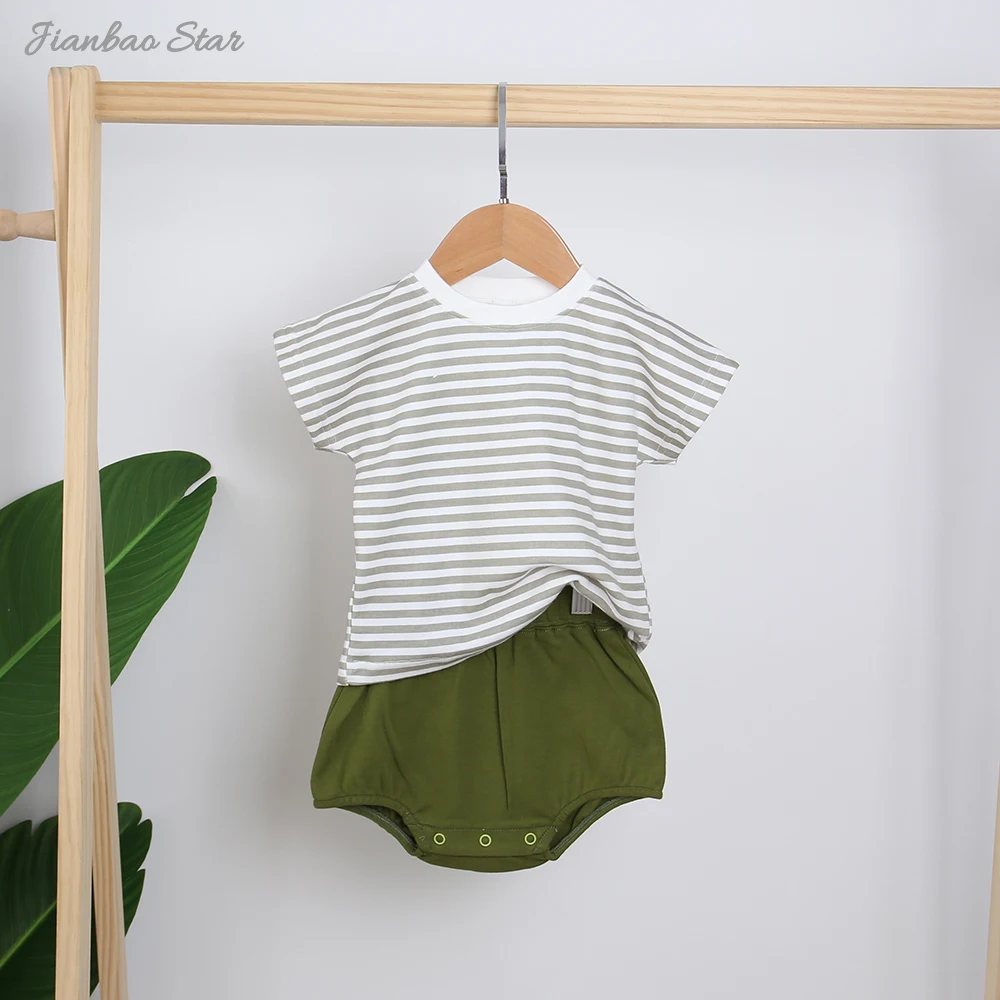 Exceedingly-soft Striped Short-sleeve Shirt With Button Shorts Baby Boys And Girls Suits Sets Simply Impeccable