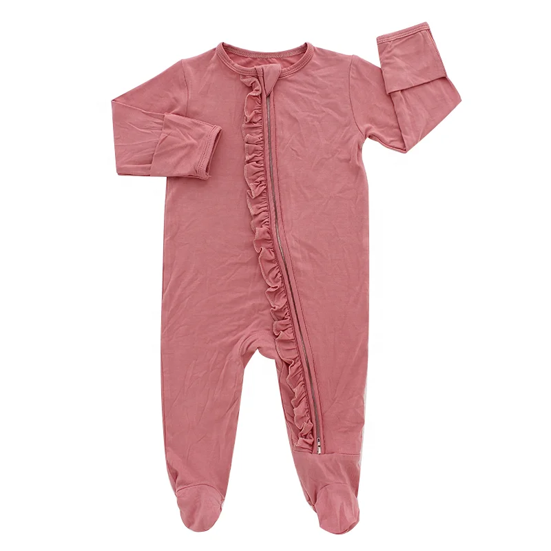 Factory New Product Bamboo Baby Romper Footie OEM Ruffled Zipper Baby Sleepsuit One Piece Soft Toddler Girl Rompers