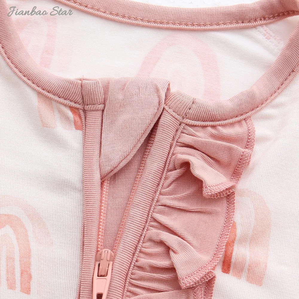 Fall Winter Bamboo Baby Clothes Sleep Suits Front Zip Butts Ruffle Newborn Girls Layette Footie Rompers Jumpsuit