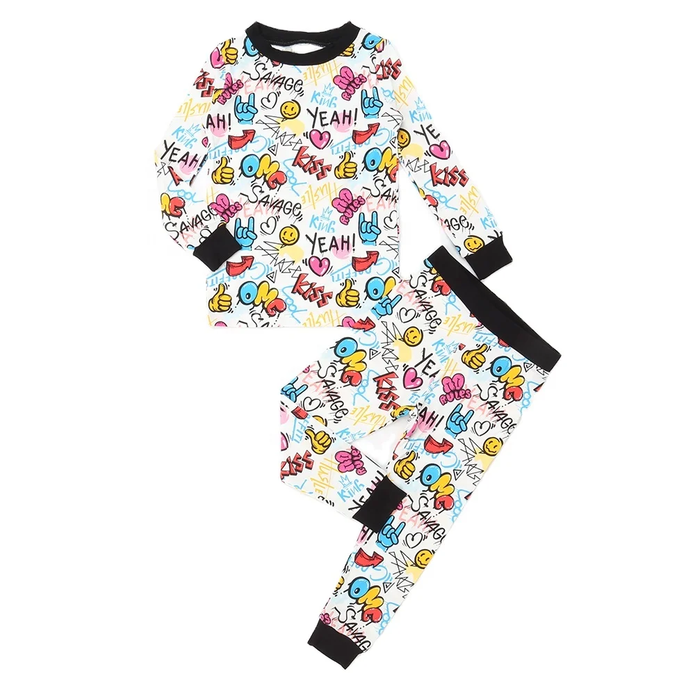 Hot Sale Custom Printed Soft Breathable Casual Style Long Sleeve Winter Pajamas 2pcs Set for Baby Boys and Girls