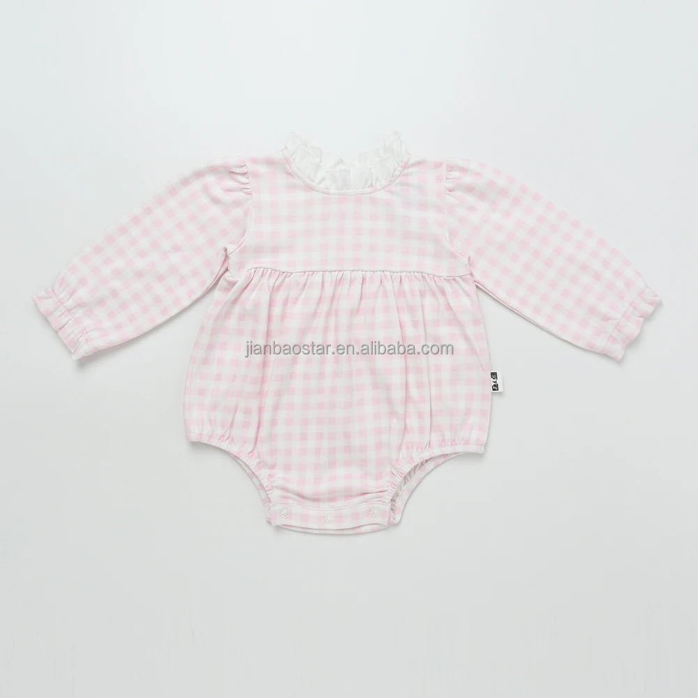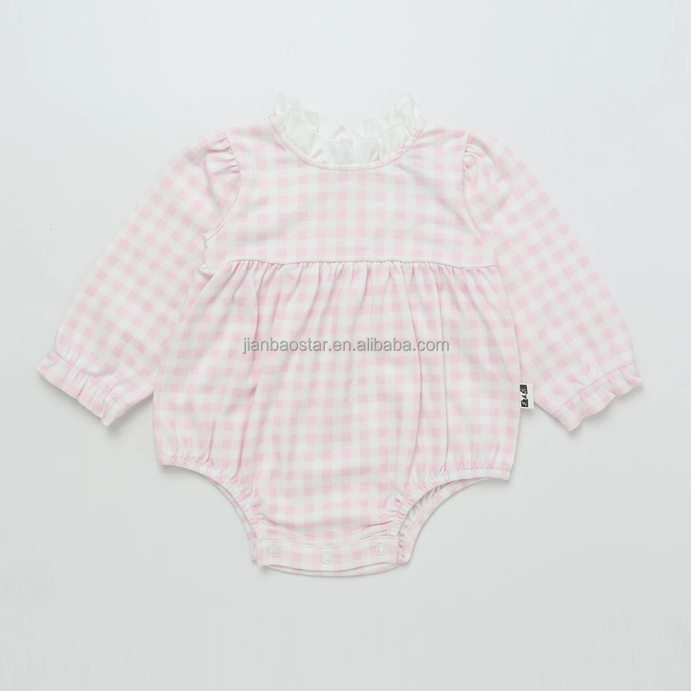 Hot Sale Magnetic Button 100%cotton Super Soft Infant & Toddler Summer Print Long Sleeves Closure Knitted Baby Romper