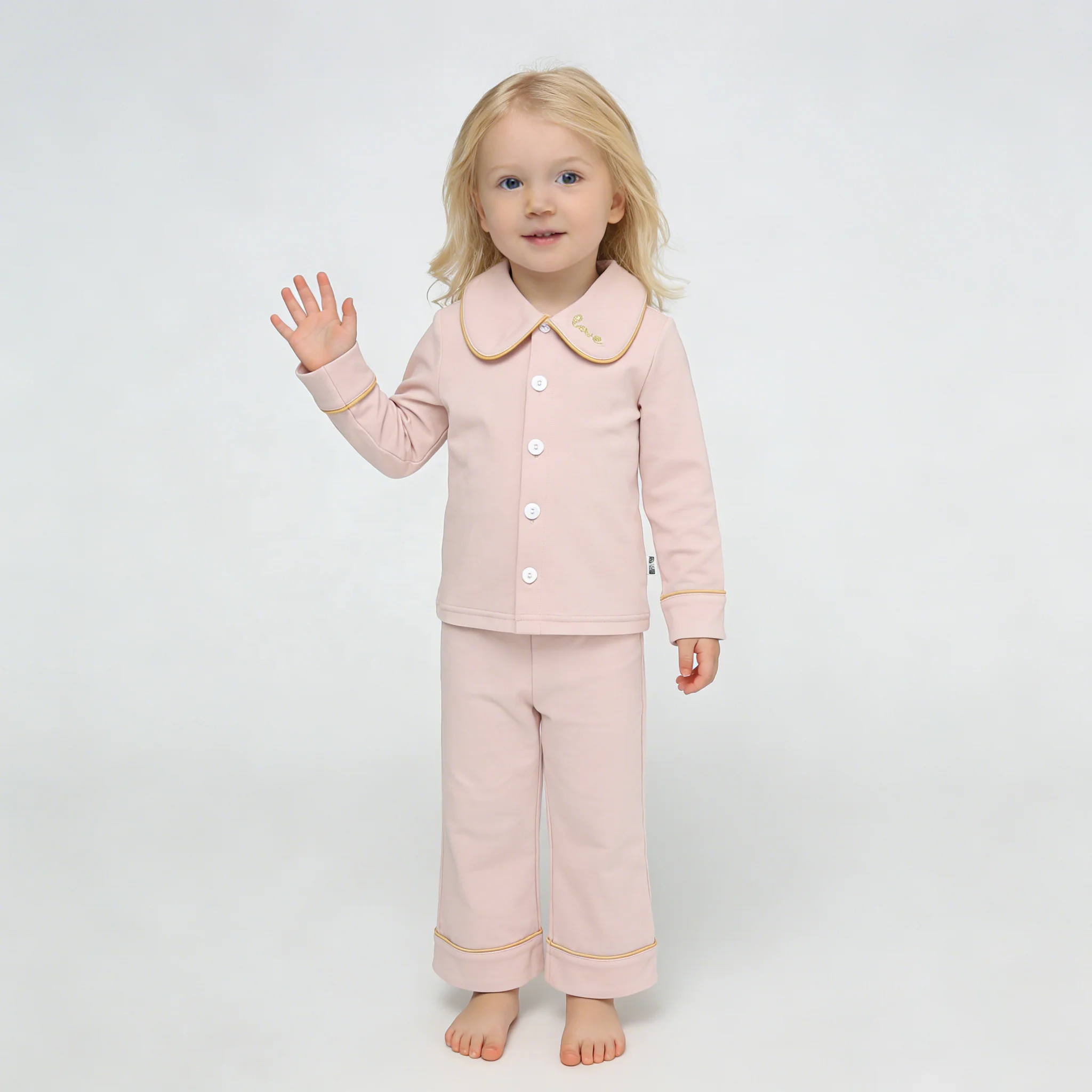 Hot Sale New Release 100% Organic Cotton Fabric Collared Casual Custom Embroidered Clothes Long Sleeve Girls Baby Clothing Set