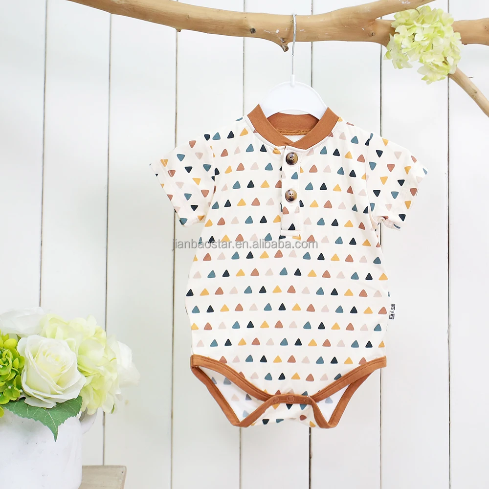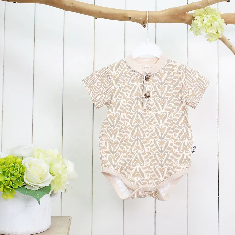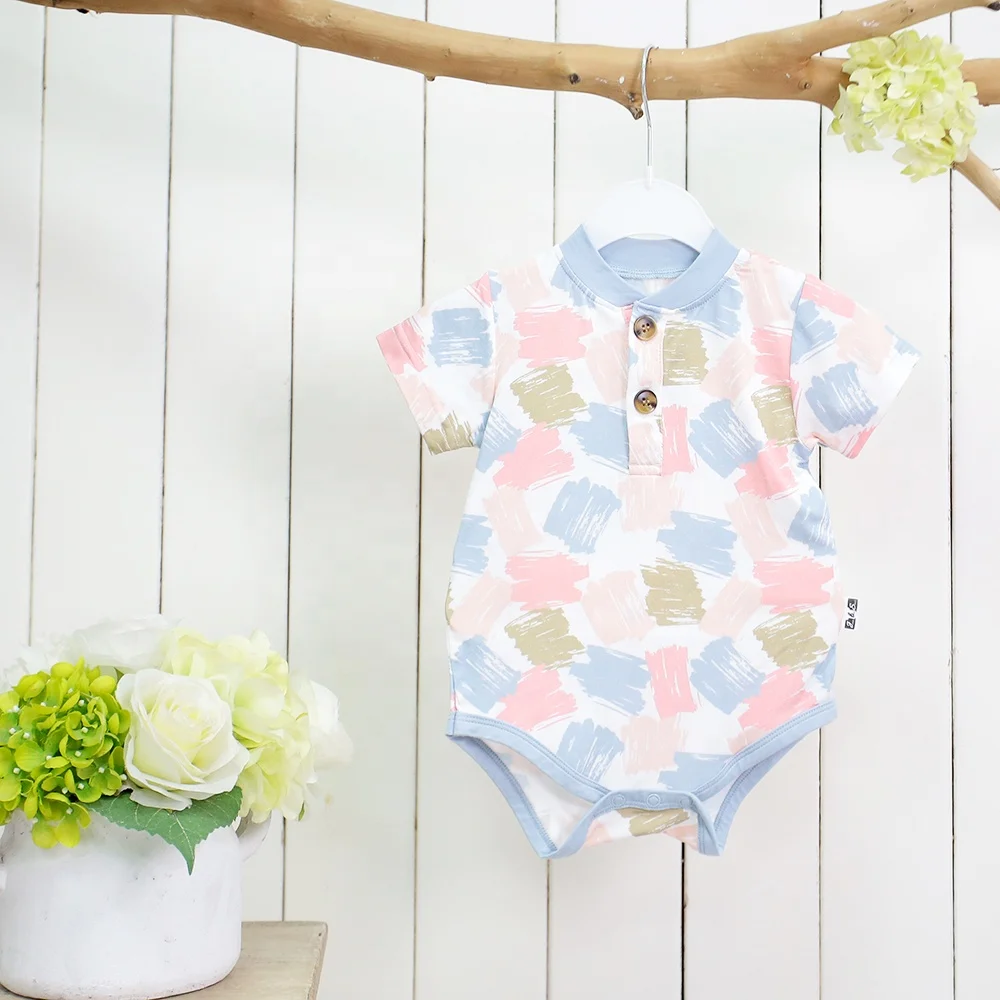 Hot Sale Summer New Design Bamboo Baby Romper Unisex Infant Short Sleeves Button Closure Knitted Cotton Fabric Printed Design