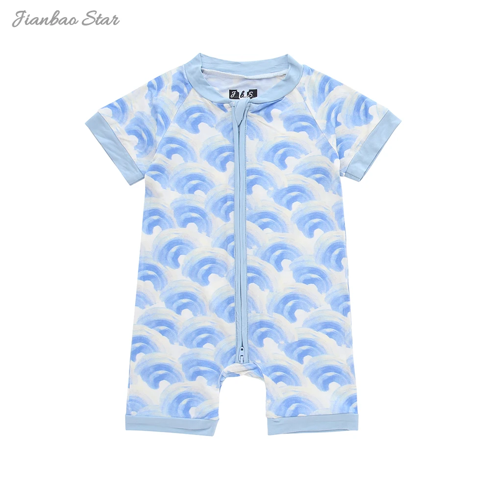 New Arrivals Hot Sale Custom Wholesale Fashion 100% Cotton Beautiful Pattern Knitted Short Sleeve Zipper Baby Romper
