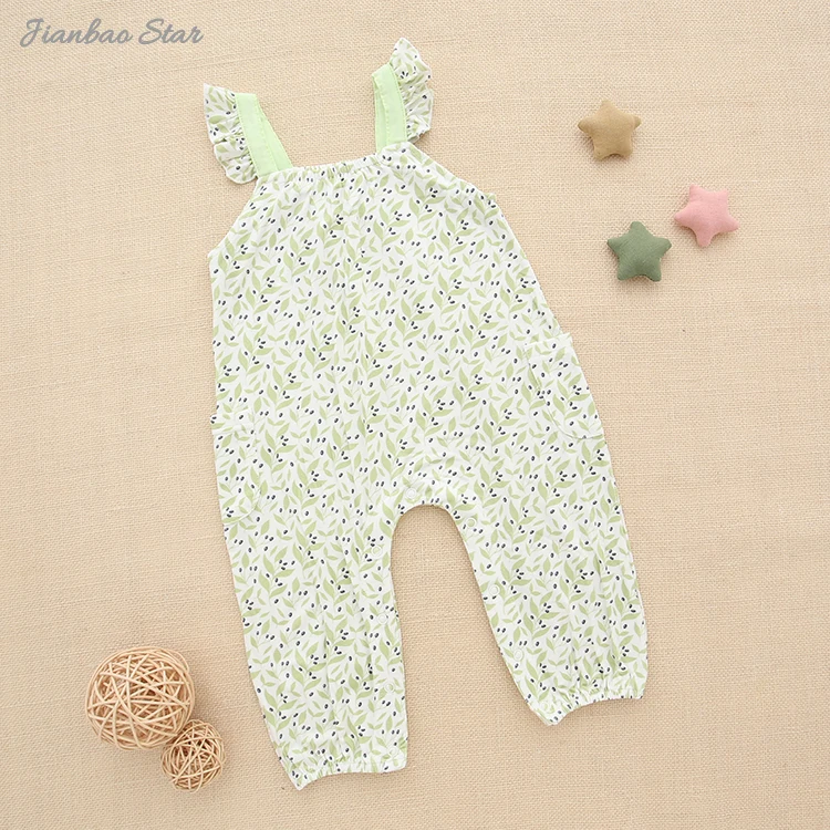 New Design 100% Cotton Knitted Comfortable Summer Style Suspender With Pocket Sleeveless Buttons Unisex Baby Romper