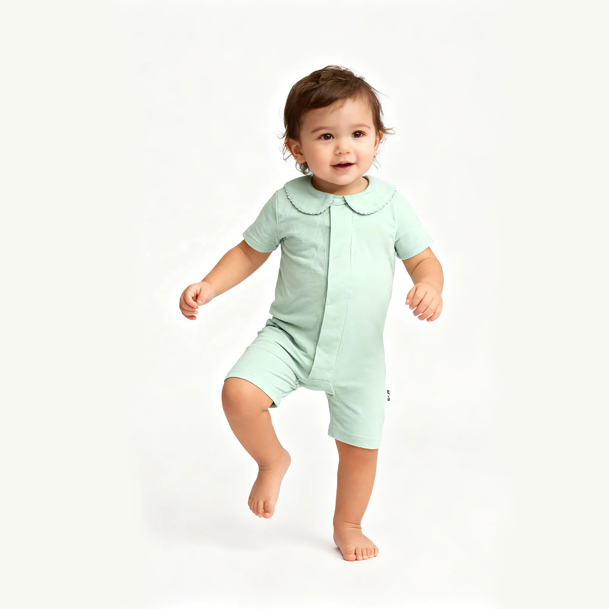 Product Name | New Design Magnetic Button Bamboo Peter Pan Collar Baby Romper Unisex Infant Short Sleeves Closure Knitted Summer ODM |