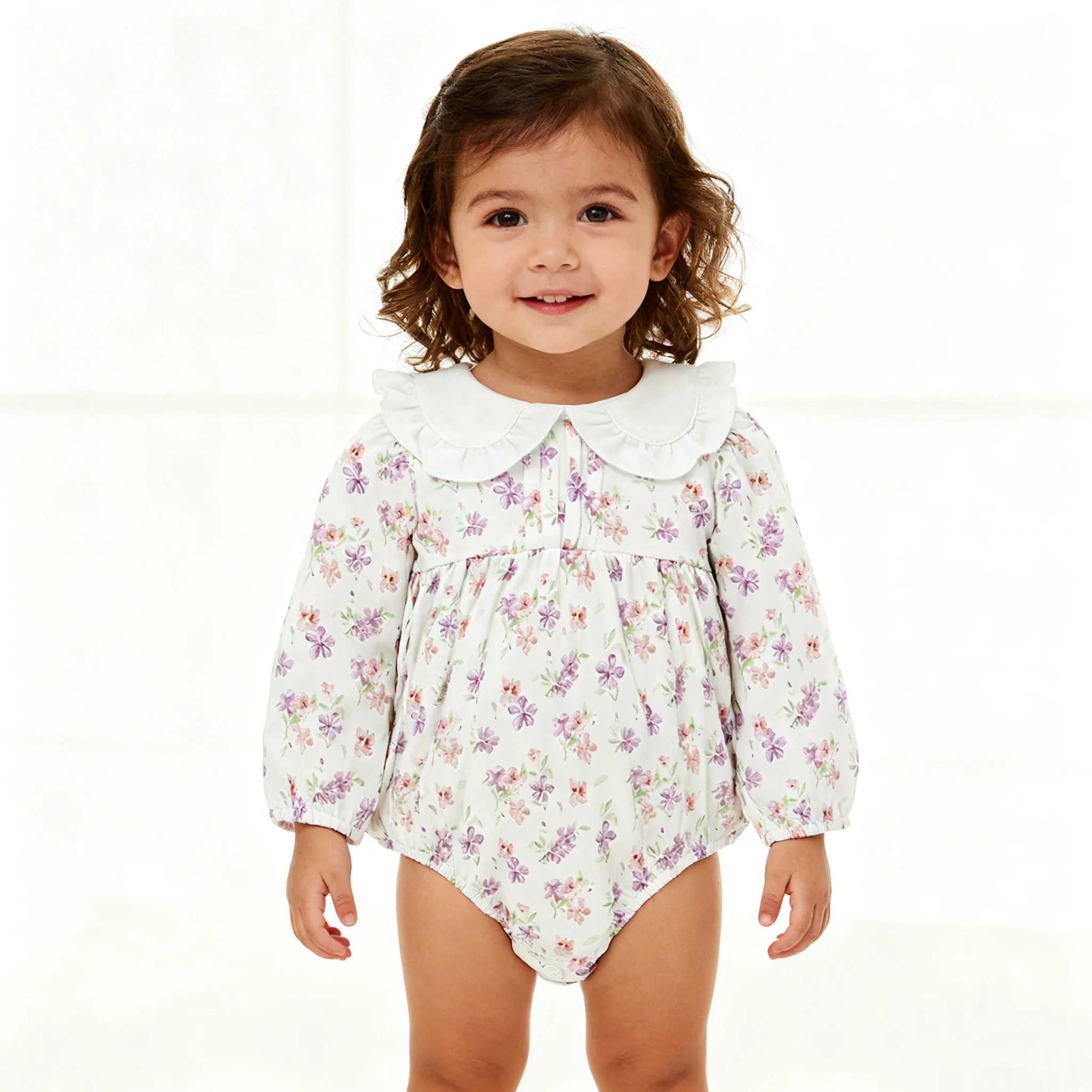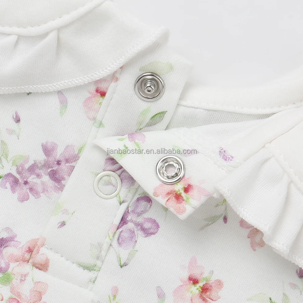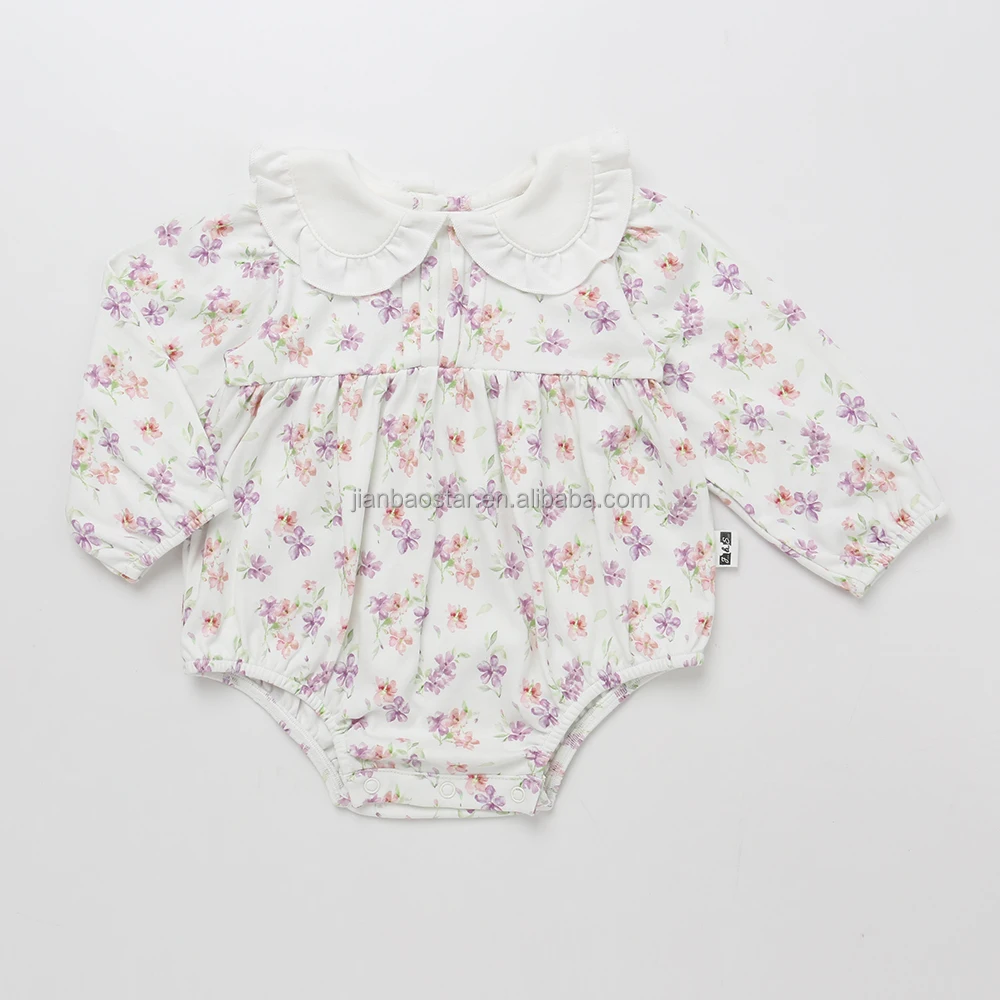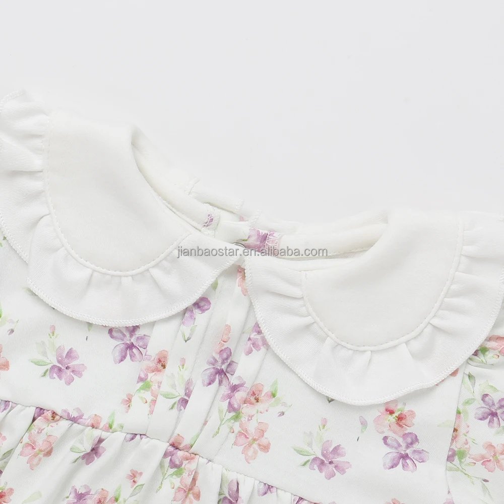 New Design Magnetic Button Peter Pan Collar Super Soft 100%orginc Cotton Long Sleeve Closure Knitted Baby Romper
