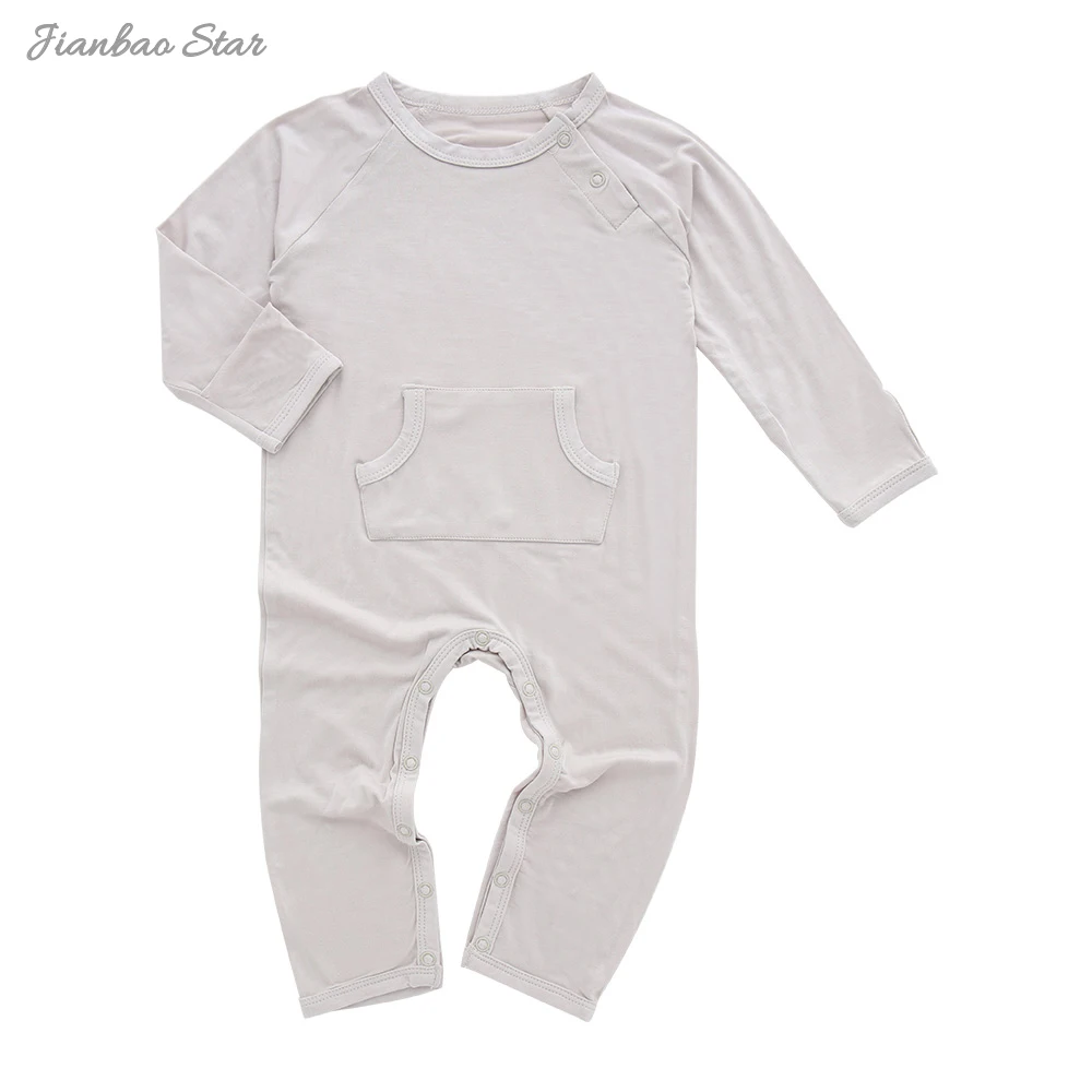 New Design New Sweet Bamboo Baby Rompers with Pocket Infant Toddler Snap Button Long Sleeve Rompers
