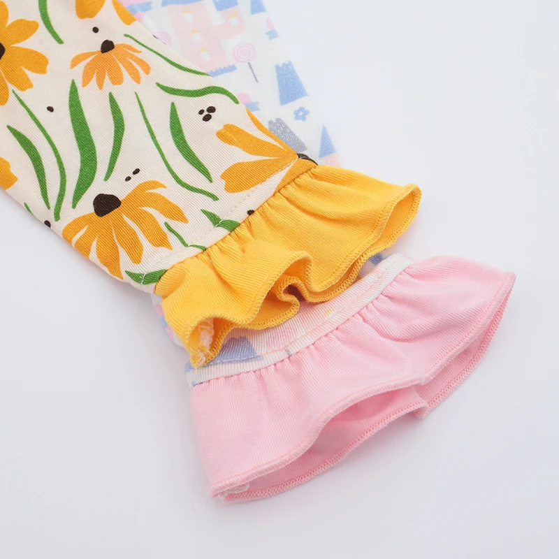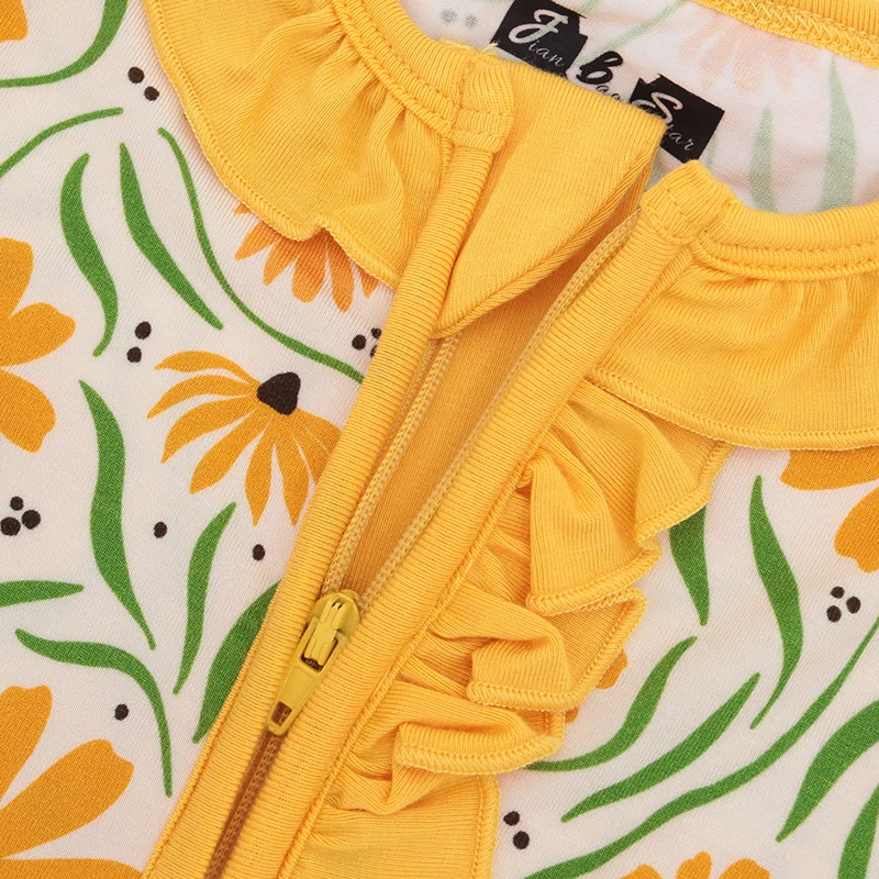 long Sleeve two ways zipper ruffle Custom pattern baby Rompers