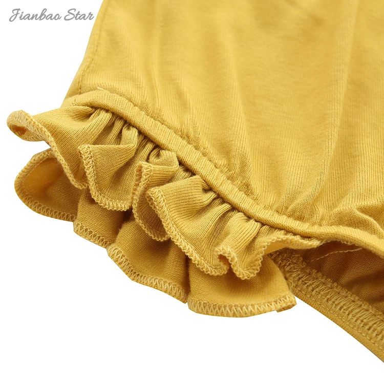 Key Words | New & Hot Sale Summer Baby Girls Clothing Set With Shoulder Strap Tops and Lovely Ruffle Shorts Bamboo Knitted Baby Outfits |
