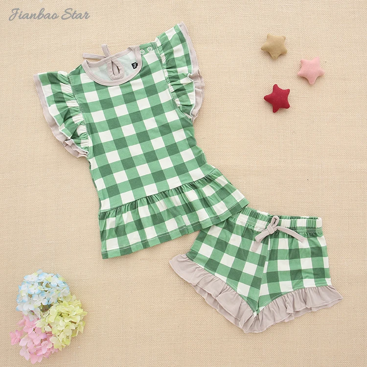 New Kids Clothing Baby Clothes Set High Quality Kids Shorts Children Girls waffle Clothes Lovely Bamboo Baby Girls' Suit set