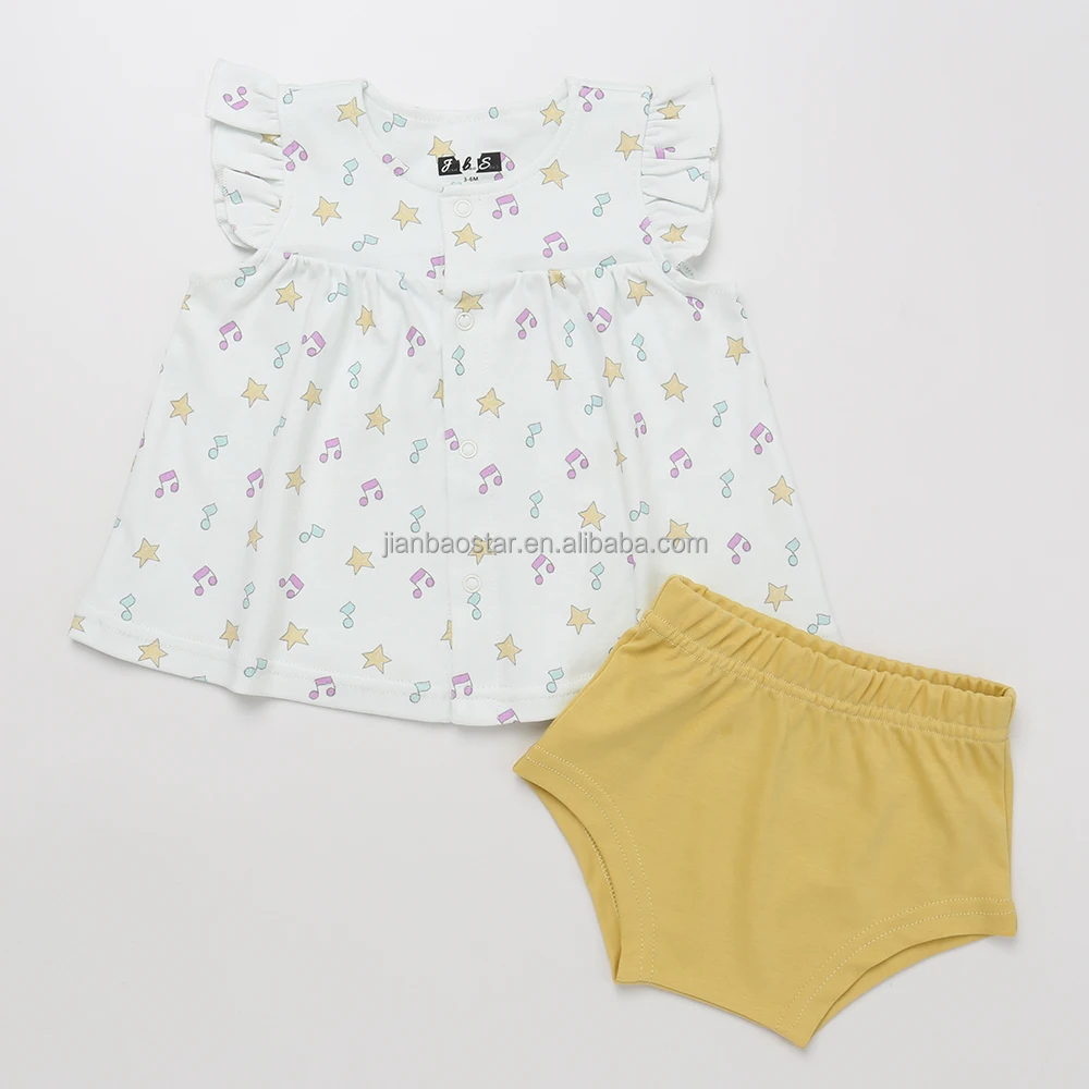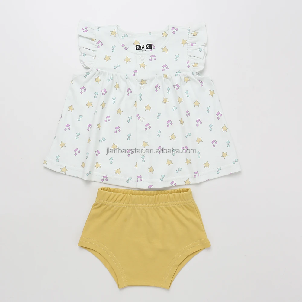 Product Name | New Release 100% Organic Cotton Fabric Casual Breathable Quick Dry Ruffle Sleeveless Girls Summer Baby Clothing Set |