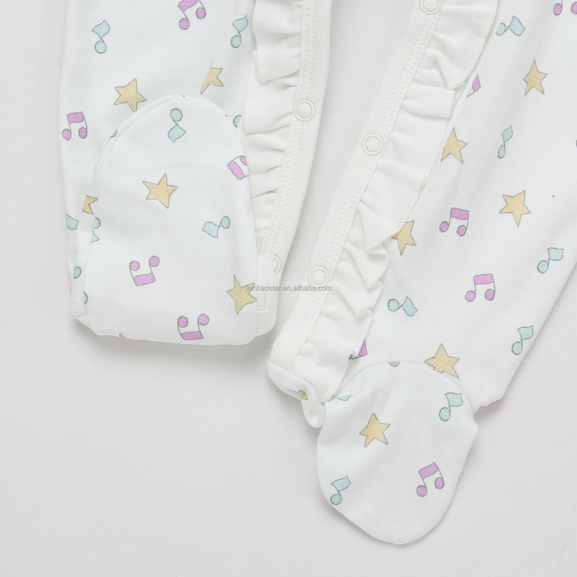 New Ruffle Design 100%orginc Cotton Knitted Super Soft Unisex Button Long Sleeves Closure Winter Baby Romper Baby Clothes
