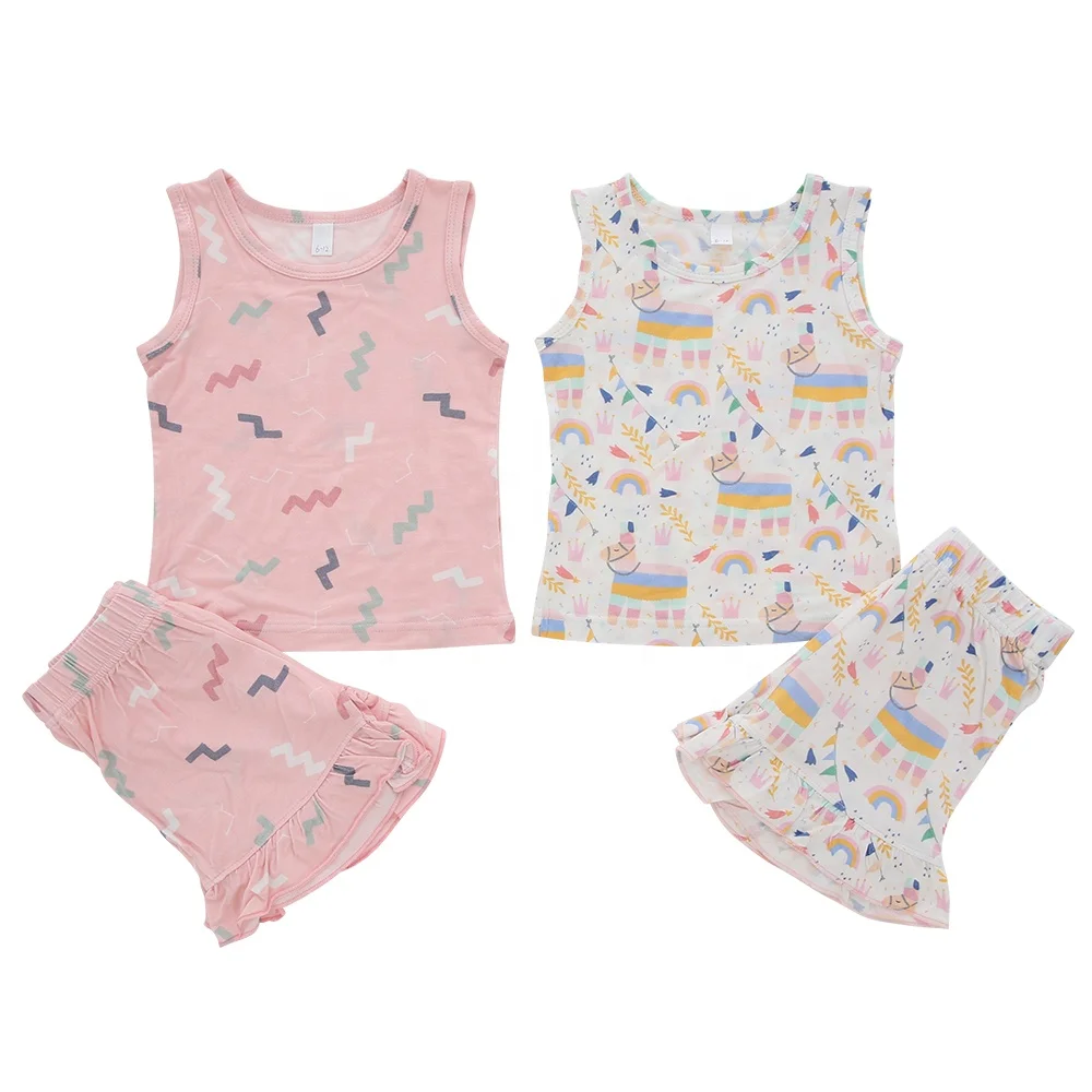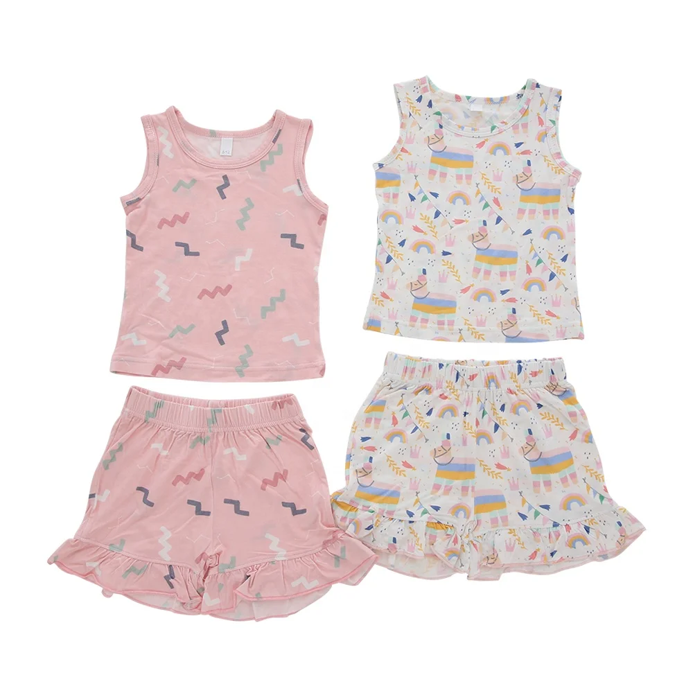 Newborn Baby Custom Design Hot Sale Baby Clothe Kids Wear Breathable Girls Outfits 2 Pieces Cotton Rib Pajamas Baby Clothes Sets