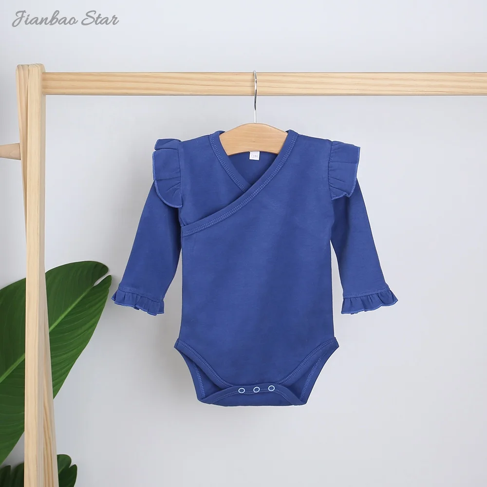 Product Name | Solid Color Cotton Ruffles Onesie for Baby Girls Long Flutter Sleeve Toddler Romper Soft Fabric Clothing for Spring Solid Color |