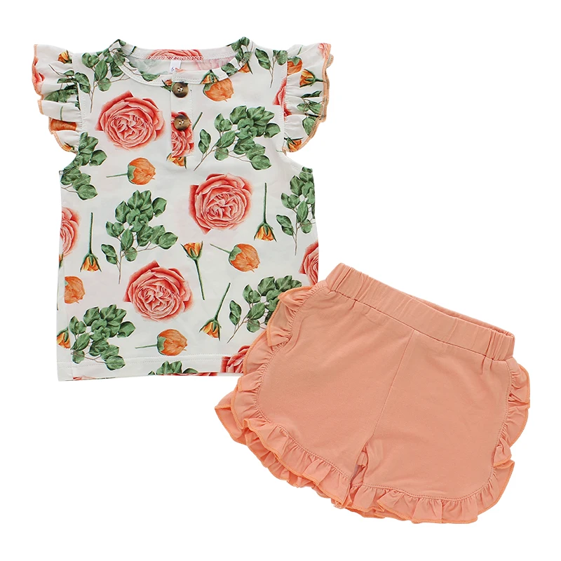 Product Name | Superior Quality New Print Design Lovely Baby Girl Summer Style with Floral Pattern Ruffle Little Girls Clothing Sets |
