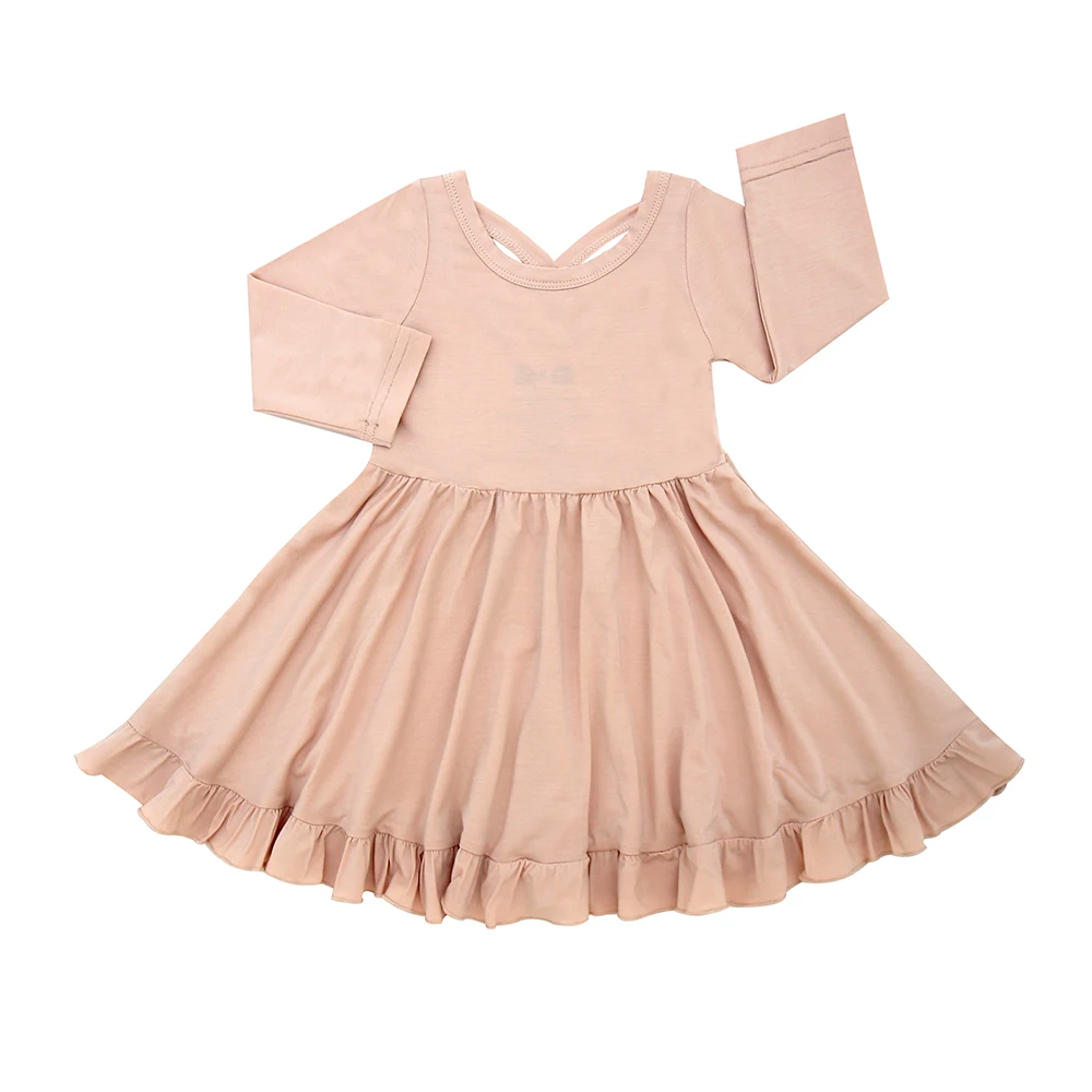 Product Name | Sweet Winter Long Sleeve Dress for Girls Kids Clothes with Ruffle Bow O-Neck and Plain Color Girl's Little Clothing |