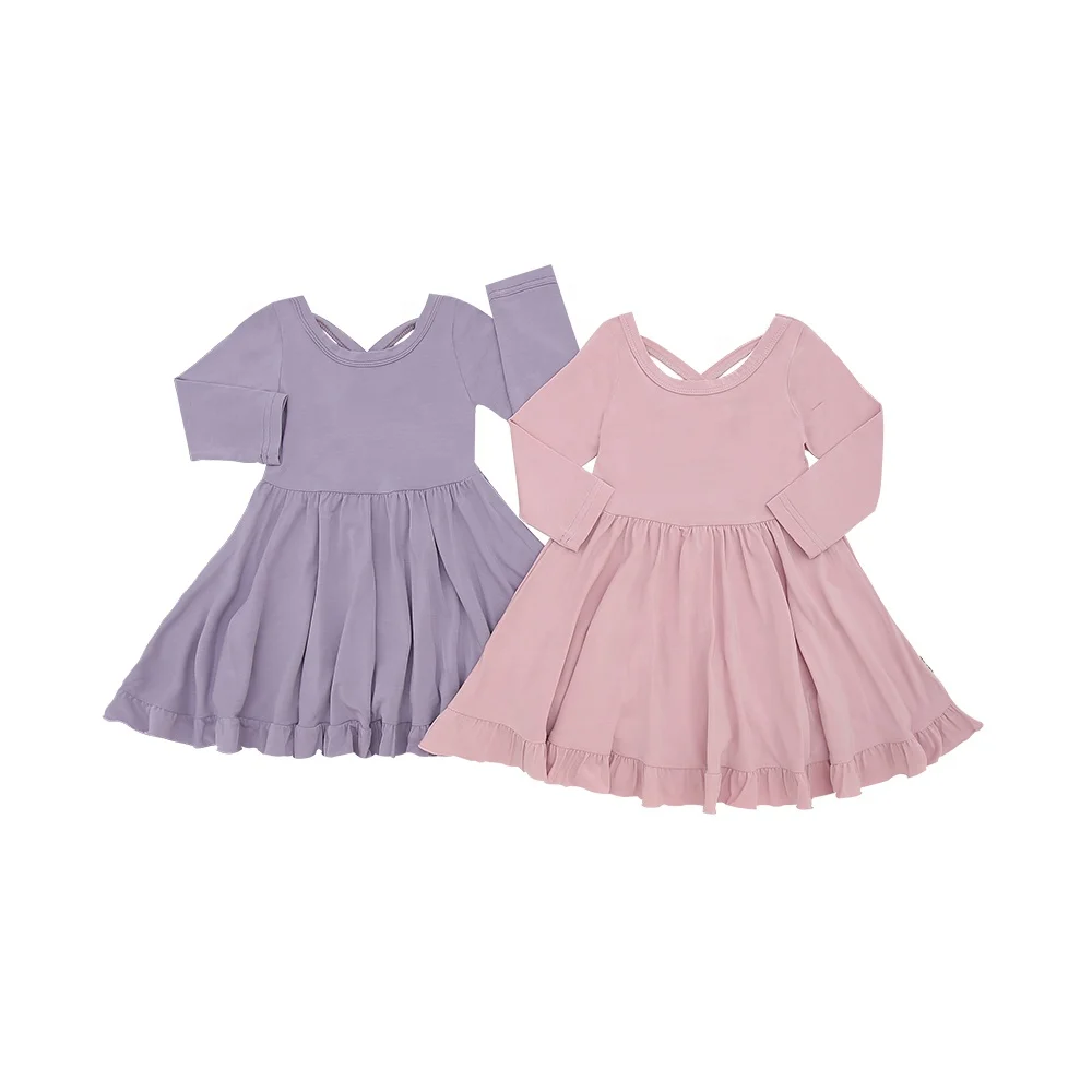 Sweet Winter Long Sleeve Dress for Girls Kids Clothes with Ruffle Bow O-Neck and Plain Color Girl’s Little Clothing