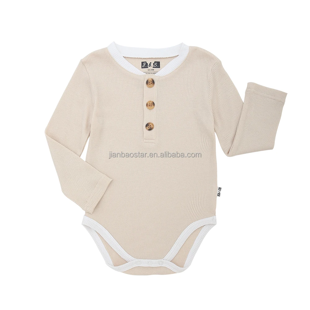 Unisex Newborn Baby Romper Customized Knitted Waffle Bamboo Fabric Short Sleeves Buttons Hot Sale Casual Summer Jumpsuit-ODM OEM