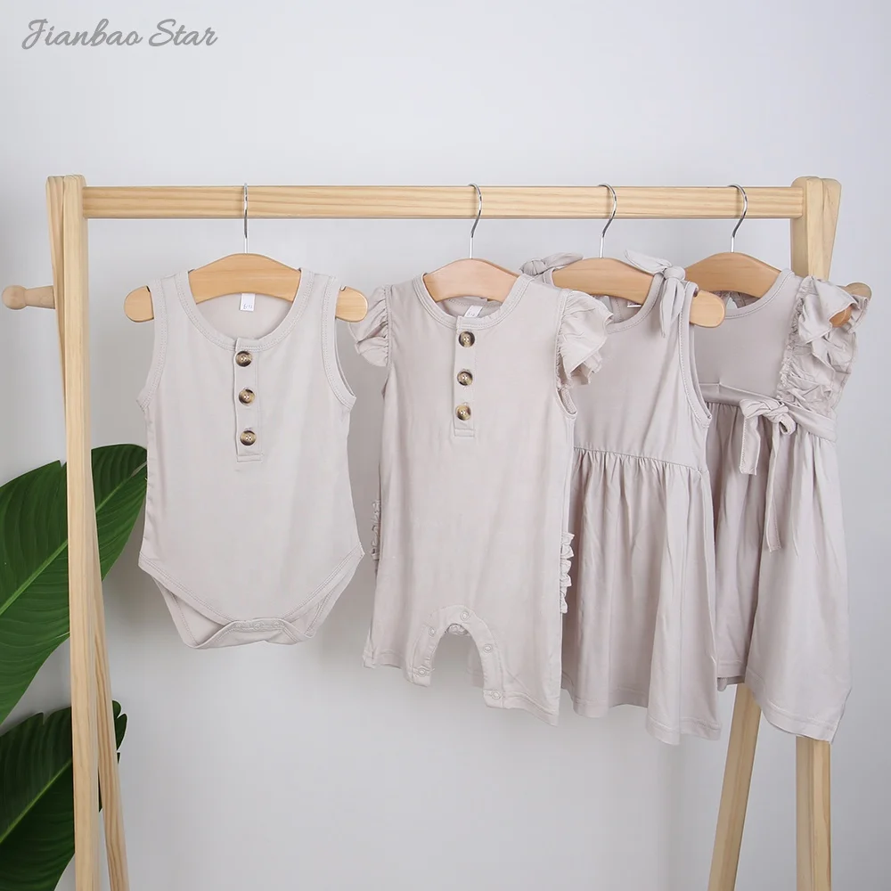 Wholesale Summer Organic Cotton Jumpsuit Newborn Baby Sleeveless Solid Romper with Coco Buttons Girl Pajama